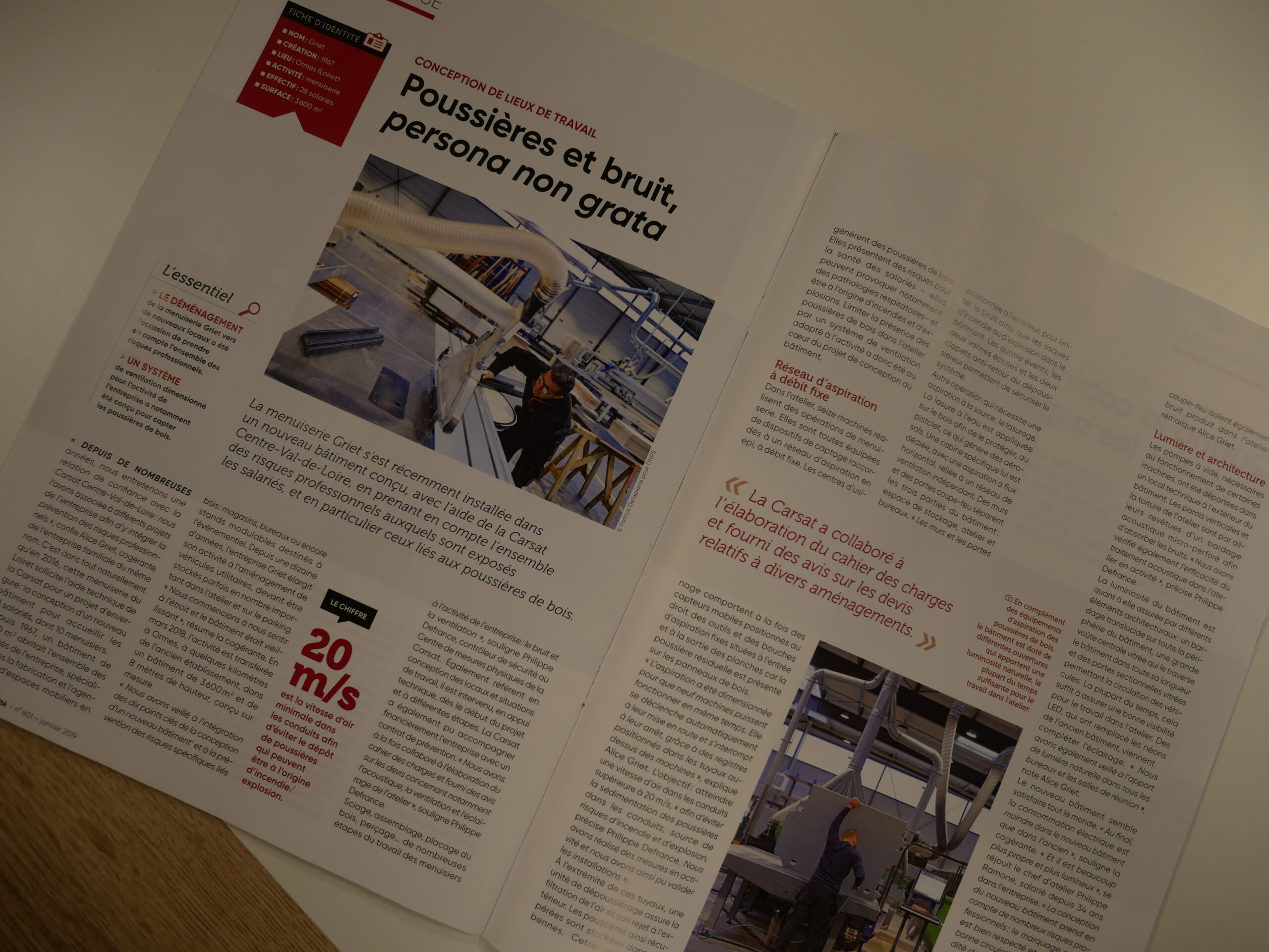 « La menuiserie Griet s’est récemment installée dans un nouveau bâtiment conçu, avec l’aide de la Carsat Centre-Val-de-Loire, en prenant en compte l’ensemble des risques professionnels auxquels sont exposés les salariés, et en particulier ceux liés aux poussières de bois. »